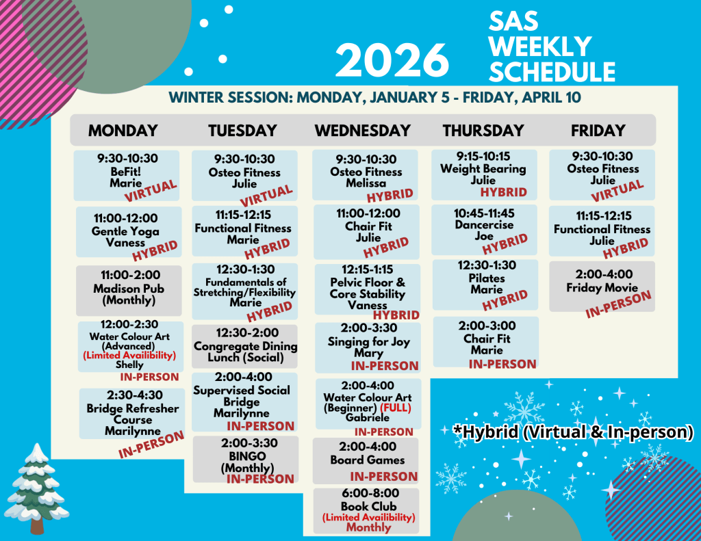 The Senior Adult Services (SAS) in the Annex. SAS Active Living Centre at St. Matthew’s Bracondale House, is dedicated to empowering seniors aged 55+ in Toronto. Through comprehensive programming, it aims to support healthy, independent living, reduce social isolation, and encourage continued engagement in a supportive community setting. Click here for our Fall Programs 2025.